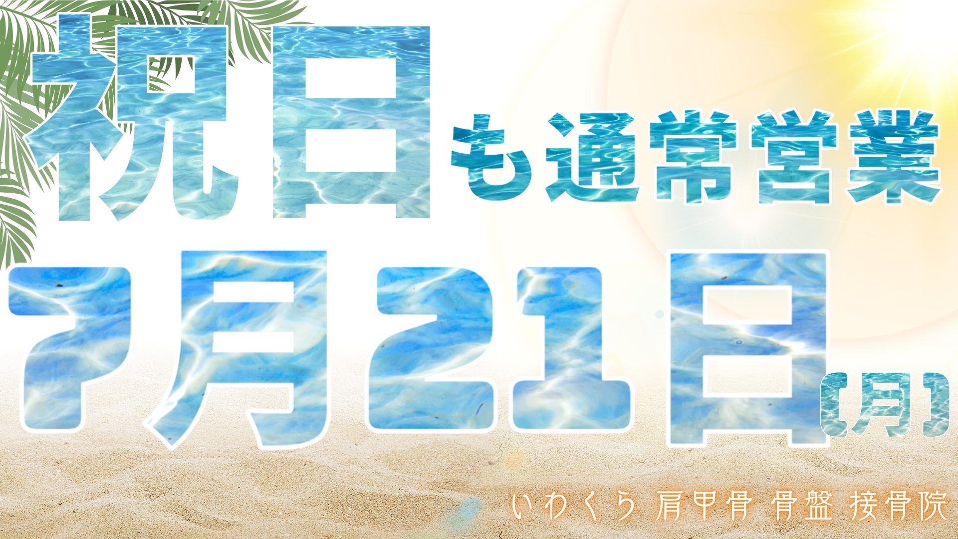 7月21日(月)の祝日もいわくら肩甲骨骨盤接骨院は休まず通常営業しております!